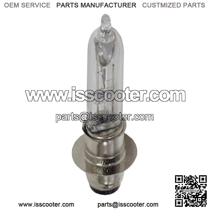 12 volt 35 watt headlight bulb with rim. This headlight bulb is compatible with many street motor scooters. If your headlight bulb is 35 watts and looks like the bulb pictured here, this is most likely the replacement bulb for you.