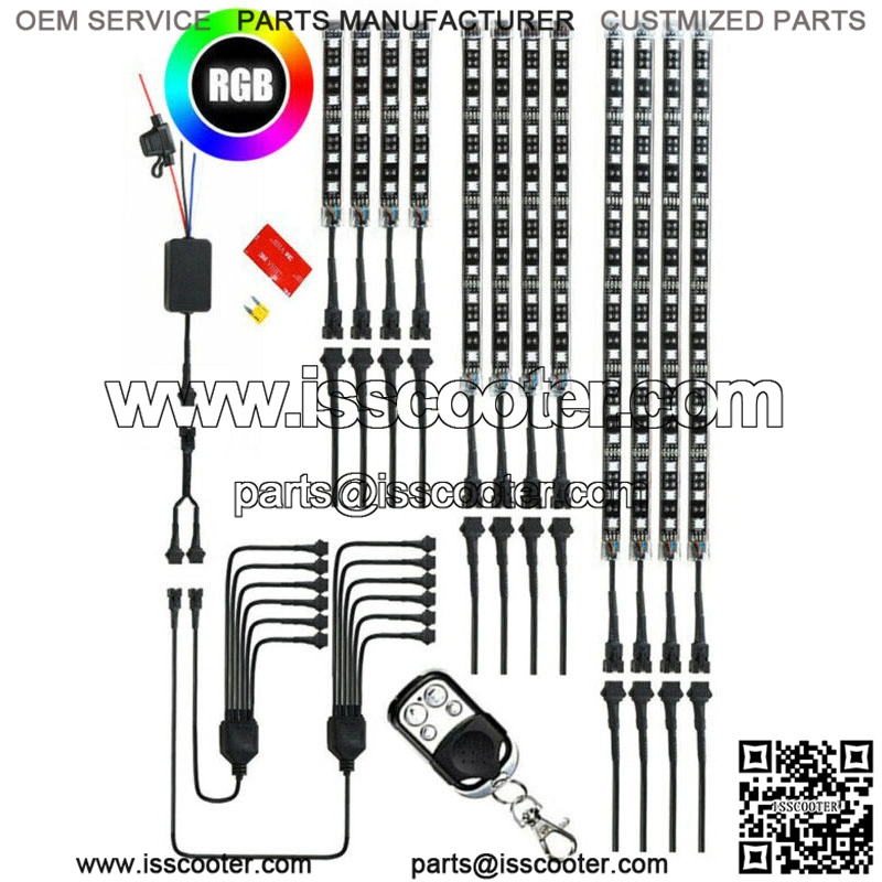 Features:Wireless Turn On/Off,Reset,Range:1-10 MeterMulti Color Brightness & Speed AdjustableUltra Flexible Strips with Brightest 5050 SMD RGB LEDsWaterproof, Heatproof, ShockproofRemote Controller:Key A : Color change , long press can change 4 levels of dimmingKey B : Flash mode . long press to increase and decrease the pattern speed relativelyKey C : Fade mode. long press to increase and decrease the pattern speed relativelyKey D : short press is on/off , long press for 5 sec is ResetSpecifications:Voltage: DC 12VWattage: 10(W)Waterproof: IP65LED type: 5050SMDFitmentCan even be used in rainy days For Scooters, Yamaha , Hodna Dirt Bike, Enduro, Golf Carts, Trailers, Snowmobiles and more Package Content??12 * RGB LED Strip Light (4x10cm,4x15cm,2x20cm,2x30cm)3 * Patch Cord1 * Remote Control
