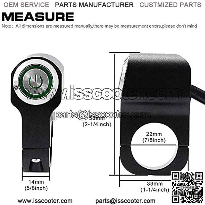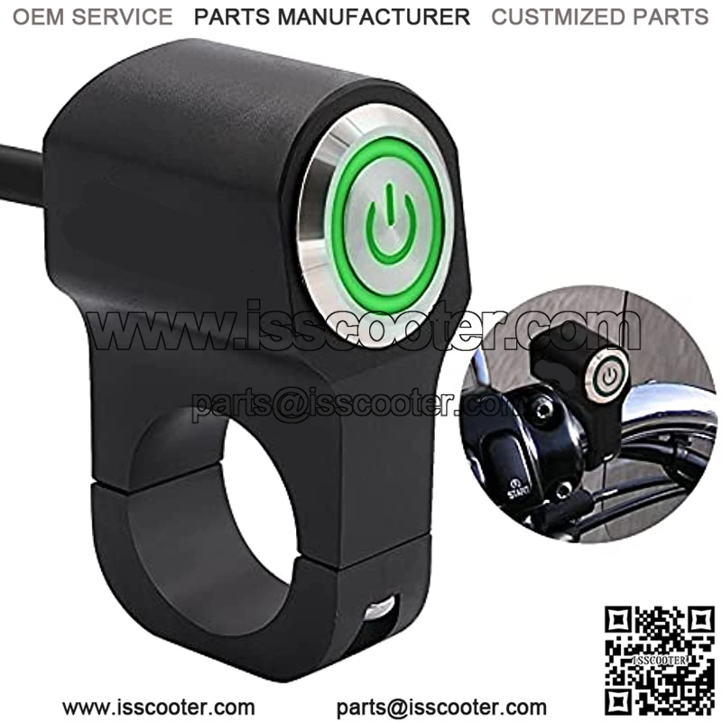 12v 10A Motorcycle ATV 7/8inch 22mm Handlebar Push Button Switch Headlight Hazard Brake Fog Light ON Off Switches-Green LED