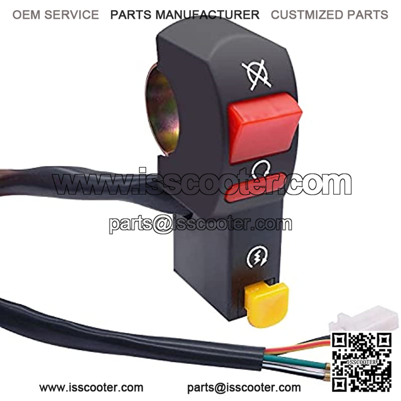 Red button for kill function, yellow for start function;Multi-use, It can be used as ON/OFF Start Kill switch for headlight, start switch; double flasher, general lights, hazard light, fog light