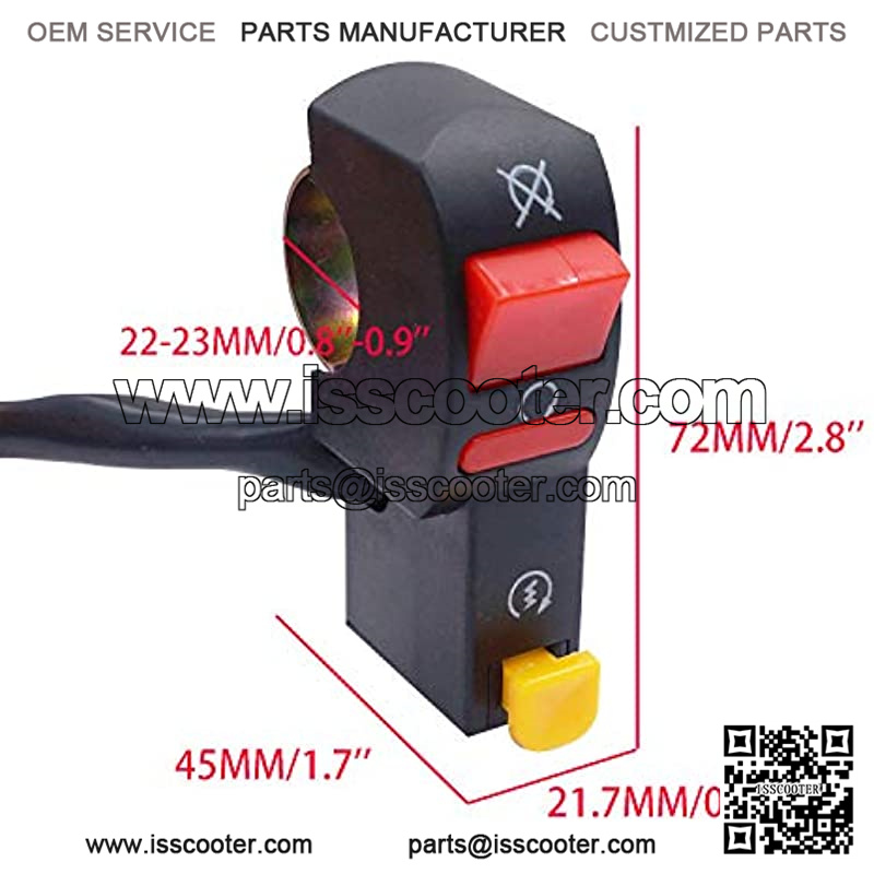 Switch Size(Approx): 21.7x72x45MM/0.85”x2.8”x1.7”;Install diameter: 7/8″ 22mm;Handlebar switch is used on DC 12V electrical system