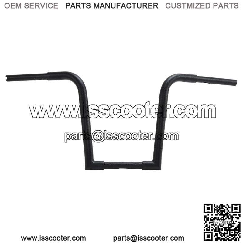 14″ rise. 7-1/2″ backward sweep. 1 1/4″-diameter center section tapers to 1″ so that standard handlebar controls fit.