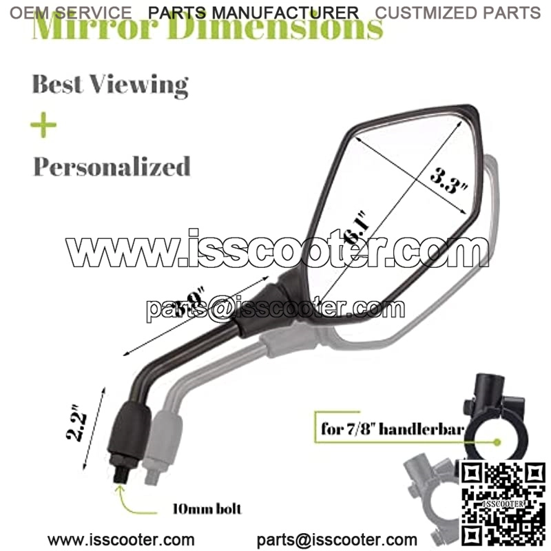 [ Wide Fitment ]: The motorcycle mirrors black come with 10mm clockwise threaded bolts and 7/8″ handlebar mount clamps [From 11 Apr. on
