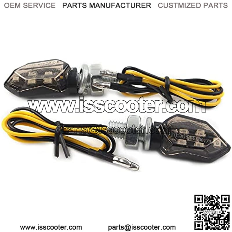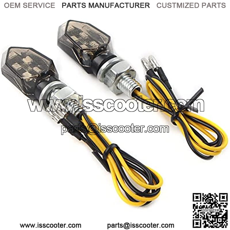 Compatibility for most Dirt Bike, Street Bike, dual sport applications, such as for Honda, for Suzuki, for Kawasaki, for Yamaha, for Hyosung, for Aprilia, for Buell, etc. The led turn signals made of ABS Plastic Housing & PC Lens, anti-scratch and waterproof, protect led chips from water or dirt damage without weakening light, prolong the life service time. Safety: Turn signal lights provides you with a decisive safety leap in road traffic and helps prevent 58% of accidents. Directly Mount to the Original Turn Signal Light Place Comes with 2 PCS Turn Signal LightsProduct Description Fit:For most Dirt Bike, Street Bike, dual sport applications, such as for Honda, for Suzuki, for Kawasaki, for Yamaha, for Hyosung, for Aprilia, for Buell, etc.Specification:Wiring: Two WireMounting Bolt Thread: 8mmCondition:100% Brand NewHousing Color: Black; Lens Color: Smoke; Light Color: AmberBulb Type: LED; Material: ABS Plastic Housing+PC LensFeatures:*Instruction is NOT included.*Safety: Turn signa