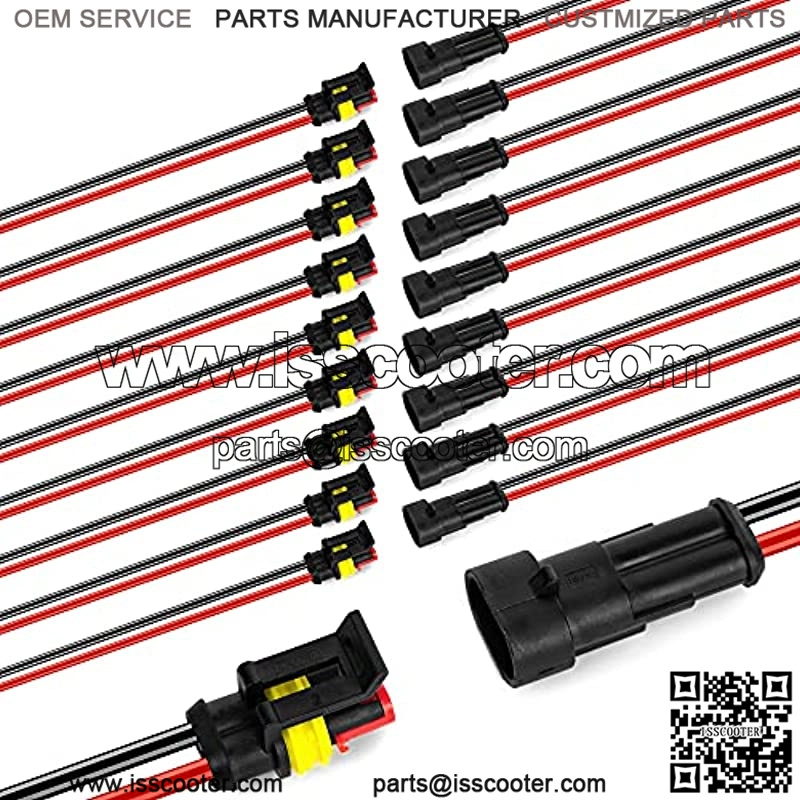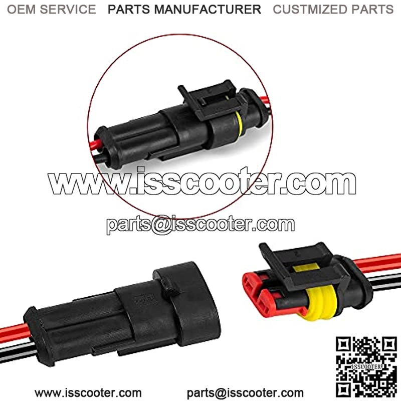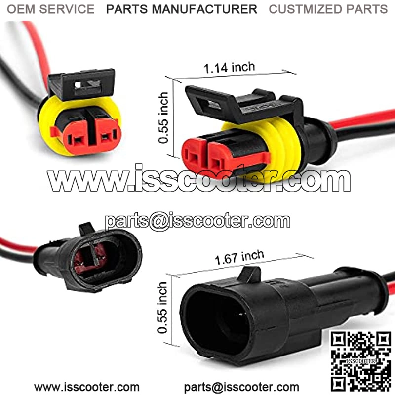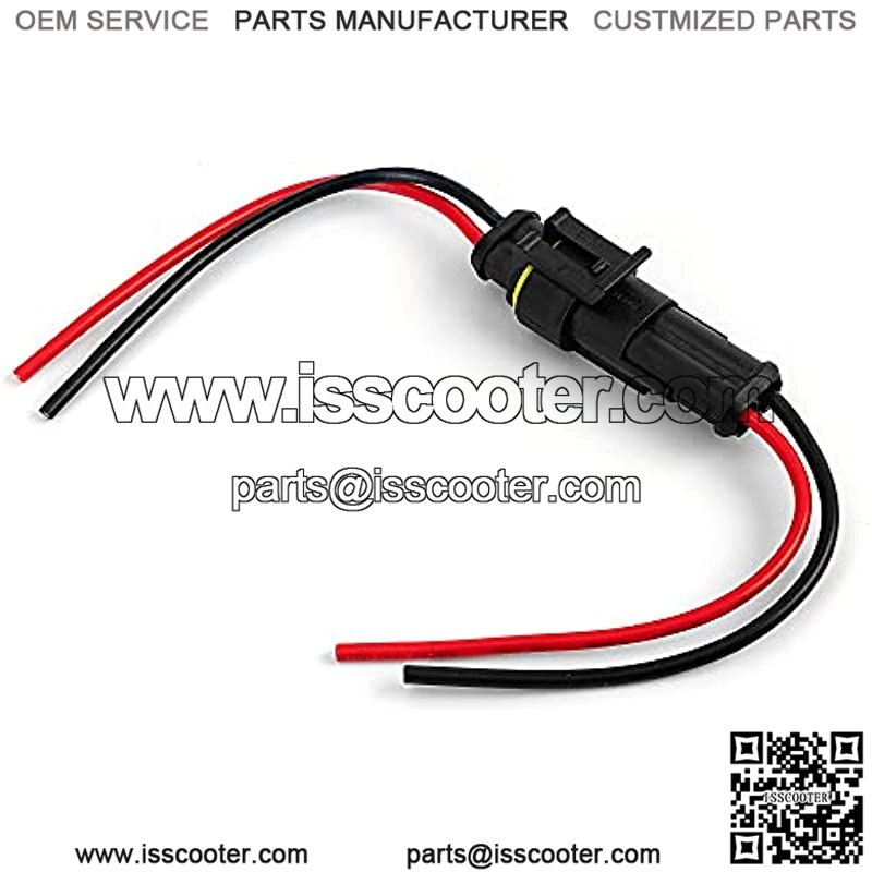 2 Pin 20-18 AWG male and female waterproof connectors with 10cm(3.94inch) wire. 2 Pin connector was made of PA66 nylon, this material has a certain thermostability, and make the plugs durable wear-resisting. Operating temperature -10~+80.High pressure, reliable safe connection. Electrical Connector Plug With Wire AWG Marine.Easy to install under soldering and crimping. Use for motorcycle, scooter, car, truck, quad bike, trike, caravan, marine, jet ski, boats,and other wire connections.