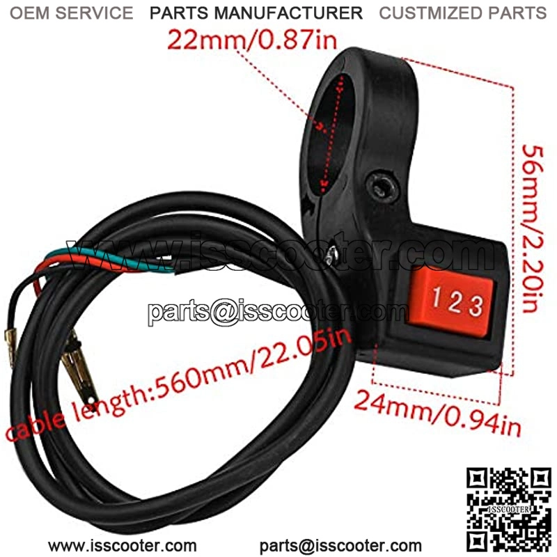 22mm 7/8 inch Handlebar Switch Electric 3 Speed Module Switch for Motorcycle E-Bike Scooter