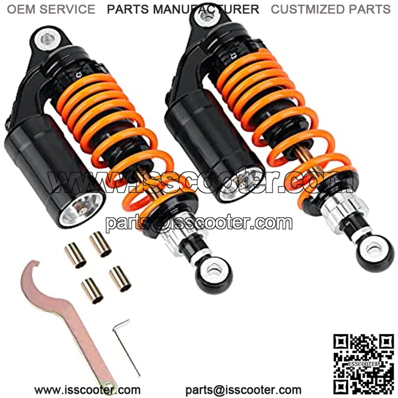 Motorcycle shock absorber universal fit for most vehicles. Package included One Pair Shock Absorber, 1 x Wrench, 4 x Bushing Universal fits for most 150cc~750cc street bikes, Karting(Go-kart), Scooters