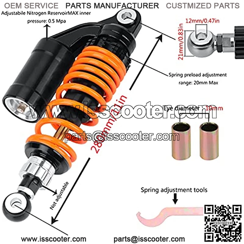 Product fitment: general-purpose air shock absorber, suitable for most 90cc 150cc-750cc streetcars, Karting (karting), scooters, and Moped Quad (ATV), with a force of 280mm. A great choice for upgrading your motorcycles and off-road vehicles.