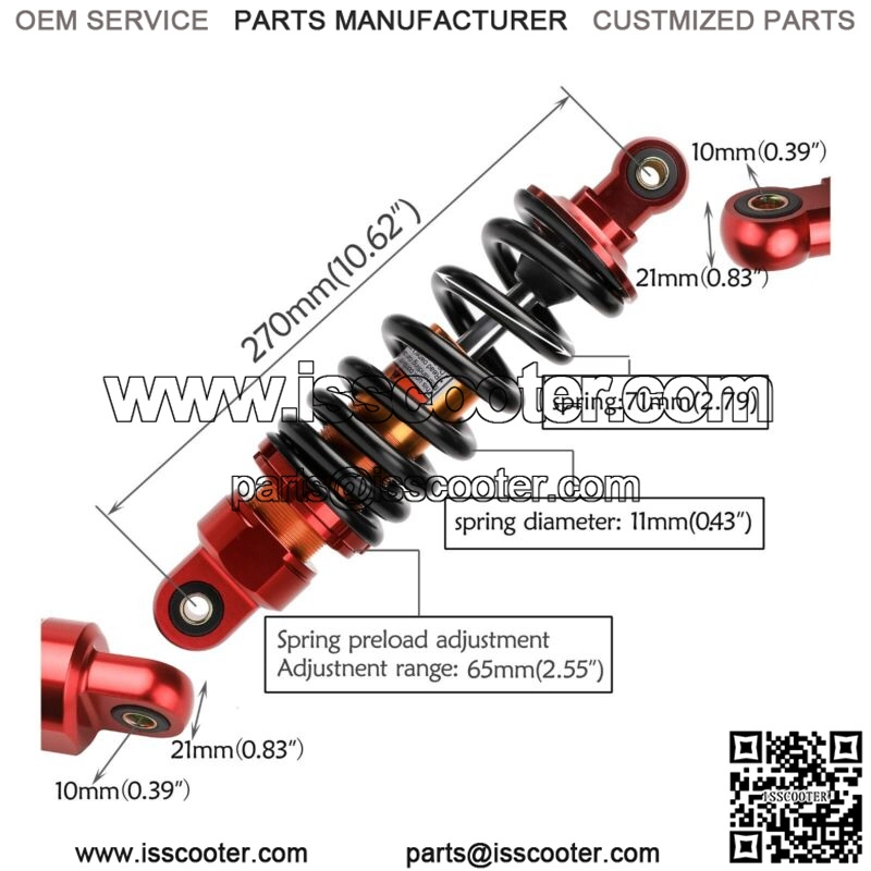 2X 270mm 10.5″ Rear Shock Absorber Pit Dirt Bike ATV Quad Apollo Coolster TTR110