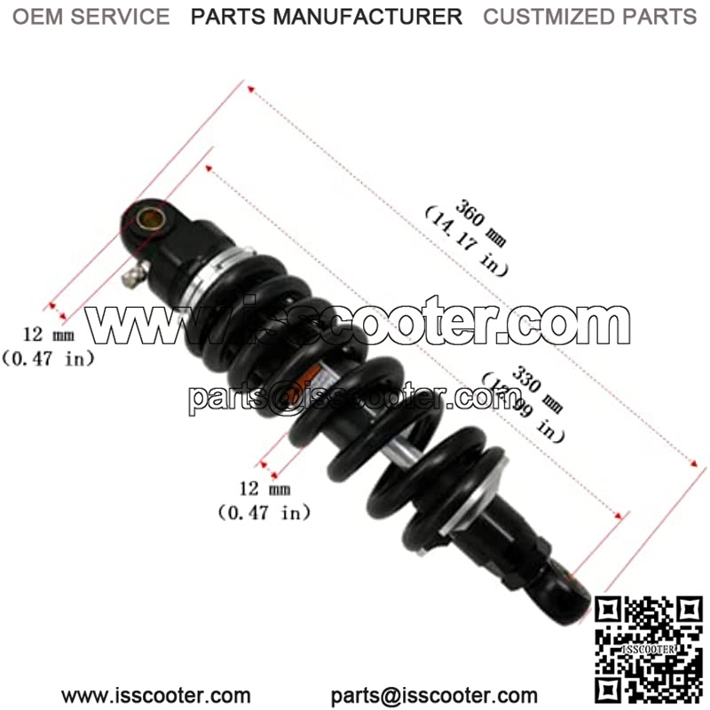 330mm 13 inch 12mm Spring Universal Motorbike Air Shock Absorber Rear Suspension ATV Quad Scooter Dirt Bike For 50cc 75cc 90cc 125cc 150cc 250cc 300cc