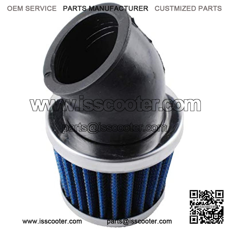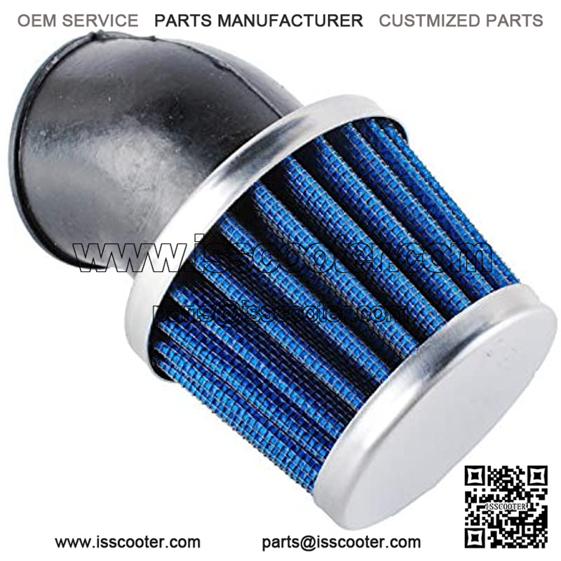 This air filter cleaner with stainless steel lens, blue color, fit on most china 50cc 70cc 90cc 110cc 125cc atvs quad bike dirt bikes go kart and scooter moped.