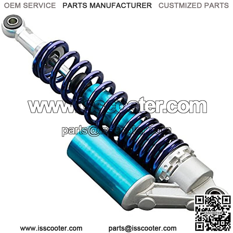 A Pair of Round Hole 375mm Aluminum and solid steel motorcycle shock absorbersUniversal for Honda/Yamaha/Suzuki/Kawasaki, the diameter of the round hole at the bottom is 12mm, and the length between holes to hole is 375mm(14.75″). Please check the size details and make sure it will fit your bike before purchase.Absorb shock promptly in the clumpiest road to improve security and make you feel more comfortableInstallation type: Eye to Eye. Best choice for replacement, style upgrading or bike modification.Motorcycle shock absorber universal fit for most vehicles. Package included: One Pair Shock Absorber, 2 x Wrench, 2 x BushingColor:375mm BlueThis pair of 375mm Motorcycle Shock Absorber is Universal for most 150cc~750cc street bikes, Karting(Go kart), Scooters and Moped Quad (ATV) with shocks of 375mm Length of Eye to Eye Core. Great choice for replacement, style upgrading and bike modification. (Please kindly check the dimension below before placing order.) Item Specific: Condition: Bra