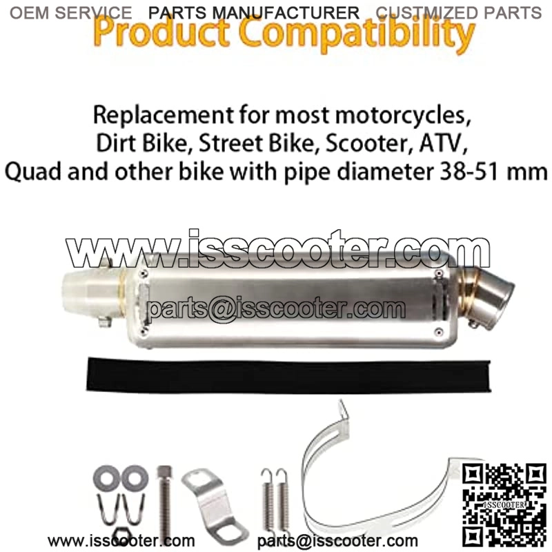 Replacement for most motorcycles, Dirt Bike, Street Bike, Scooter, ATV, Quad and other bike with pipe diameter 38-51 mm