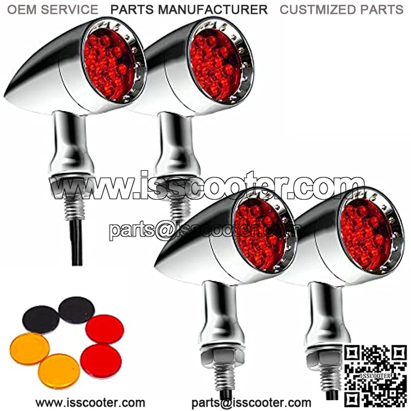 4 luces direccionales de 15 ledes, parte trasera delantera de aleaci??n de zinc, se adapta a la mayor??a de motocicletas, bicicletas de calle, scooter, Cruiser Chopper y m??s, carcasa cromada de luz roja