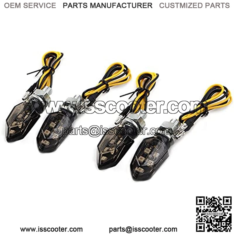 Fitment: For most Dirt Bike, Street Bike, dual sport applications, such as for Honda, for Suzuki, for Kawasaki, for Yamaha, for Hyosung, for Aprilia, for Buell, etc. Made from good quality material ABS Plastic Housing & PC Lens, lightweight, durable and precise. Safety: Turn signal lights provides you with a decisive safety leap in road traffic and helps prevent 58% of accidents. Directly Mount to the Original Turn Signal Light Place Comes with 4 PCS Turn Signal LightsProduct Description Fit:For most Dirt Bike, Street Bike, dual sport applications, such as for Honda, for Suzuki, for Kawasaki, for Yamaha, for Hyosung, for Aprilia, for Buell, etc.Specification:Wiring: Two WireMounting Bolt Thread: 8mmCondition:100% Brand NewHousing Color: Black; Lens Color: Smoke; Light Color: AmberBulb Type: LED; Material: ABS Plastic Housing+PC LensFeatures:*Instruction is NOT included.*Safety: Turn signal lights provides you with a decisive safety leap in road traffic and helps prevent 58% of accide