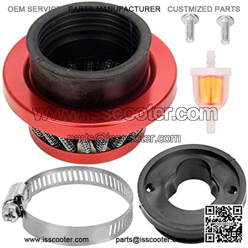 42mm 43mm 44mm Air filter Cleaner Stack Fuel filter for 47cc 49cc Mini ATV Quad Dirt Pocket Bike Cag MAT1 MAT2 Mini Moto Pit Dirt Bike Moped G-Scooter Motocross Parts Red