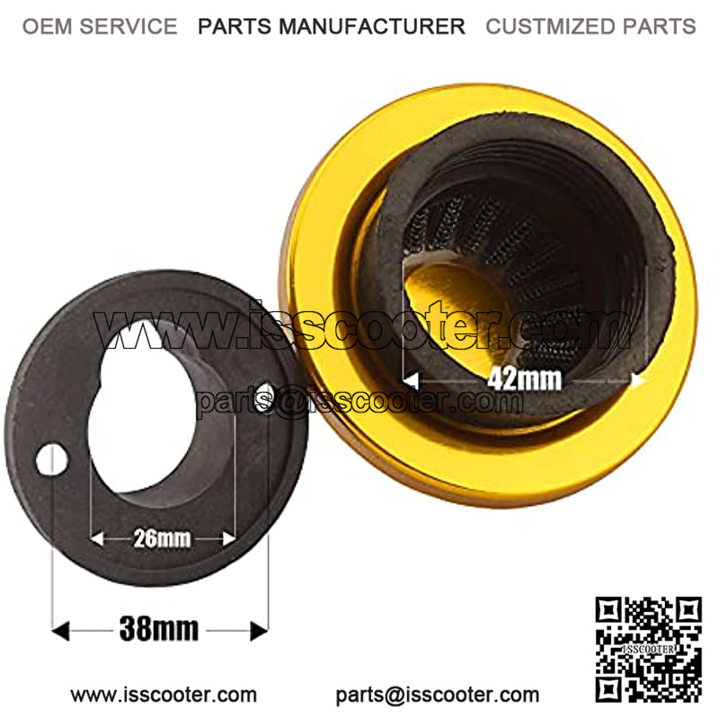 42mm 43mm 44mm Golden Air filter Adapter Velocity Stack for 33cc 43cc 47cc 49cc 50cc 52cc Minimoto 2-stroke Dirt Mini Pocket Bike Kids ATV Go Kart Goped Blad Gas Powered Scooter Motovox MVS10