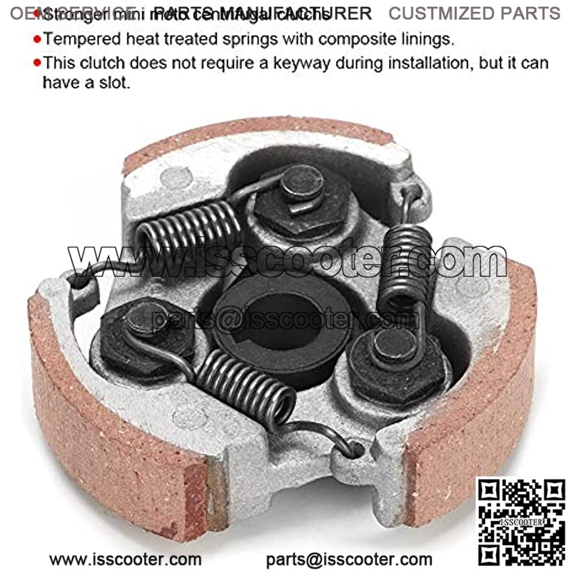 Durable: 3 stronger mini moto centrifugal clutches can make it durable and reliable. Tempered heat-treated spring with composite lining.