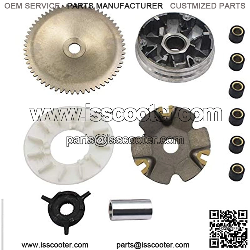 Variator Drive Wheel Assembly for GY6 QMB139 50cc 4-stroke engines Kit Includes: Variator Pulley (Retainer), 7gr Rollers, Drive Face Spacer, Cooling Fan, Kick starter ratchet gear, Drive Face Gear, Variator Back Plate with sliders Fits many 50cc 4- stroke engines, Jonway VIP Lance Kymco Baccio TaoTao Tank Peace gas scooters Fit Most brand models, like AVANTI, BAJA, BAOTIAN, BMS, BMX, DIAMO, EAGLE, FUSHIN, ICE BEAR,JACKEL, MOTO, JM STAR, JONWAY, KAZUMA, KEEWAY, KYMCO, MOTOFINO,PANTHER, REDCAT, ROKETA, SCHWINN, STRADA, SUNL, TANK, TAO TAO,TERMINATOR, VENTO, VERUCCI, WILDFIRE, X-TREME, YAMATI, AND MANY MORE Roller weight: 8.5 gram, Advanced material solid structure high strength and long life span
