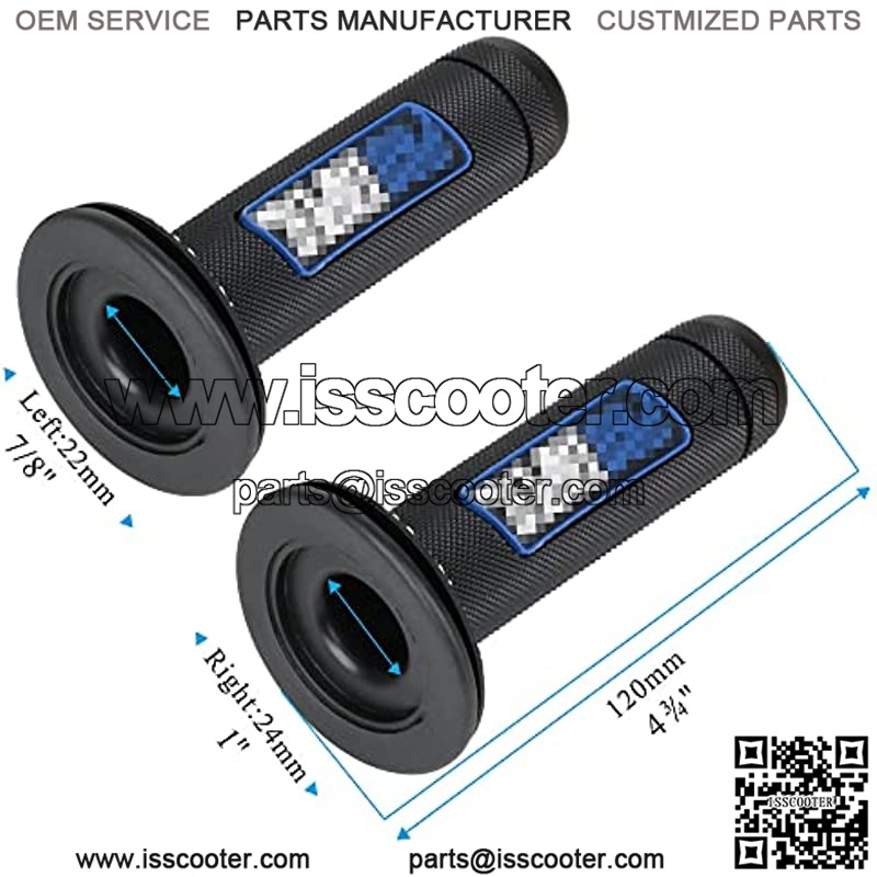 ??Material??The Hand Grip Bar made of super soft but strong rubber material, take more cushioning against vibration without reducing control.??Fitment?? Universal Motorcycle Handlebar Grips fit for all 7/8″ Left & 1″ Right Grips.Left inner diameter: 22mm, Right Internal Diameter: 24mm. The size of the right hand is 1 “because the right hand will have the throttle seat.??Anti Slip Design??Full Diamond pattern improves grip and reduces vibration,allow ease of repositioning hands to grip??Durability??Tacky gel-like surface compound is prefect for motocross. Designed to self-clean and shed mud away from outer surface,offer the ultimate combination of comfort and durability.??Wide Use?? Perfectly compatible and interchangeable with the original parts.Fit most Motorcycles, Dirt Bikes, Scooters, Pocket Bikes, Mini Quads Etc.Product Description Specification: Overall Length Of Grips Measures : 120mm Please Check Your Measurements Left inner diameter: 22mm Right Internal Diameter: 24mm Fit most of 7/8 I