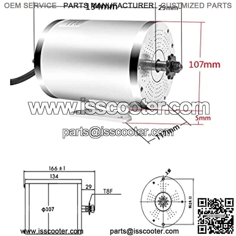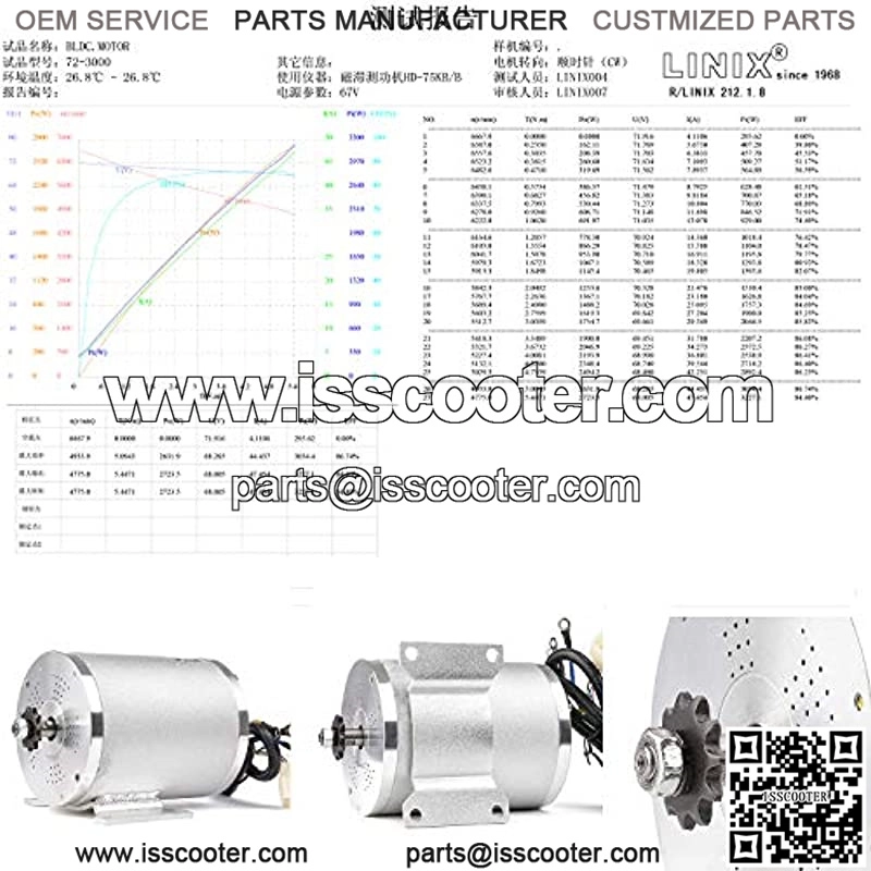 Motor Type: Brushless DC High Speed Motor, Mid Drive, Voltage 72VDC, Rated Power 3000W Max, Current 45A, Rated Speed 4900rpm/min, Max 5800RPM, T8F 11Teeth Sprocket Chainwheel,Load Weight:100-200kg About.