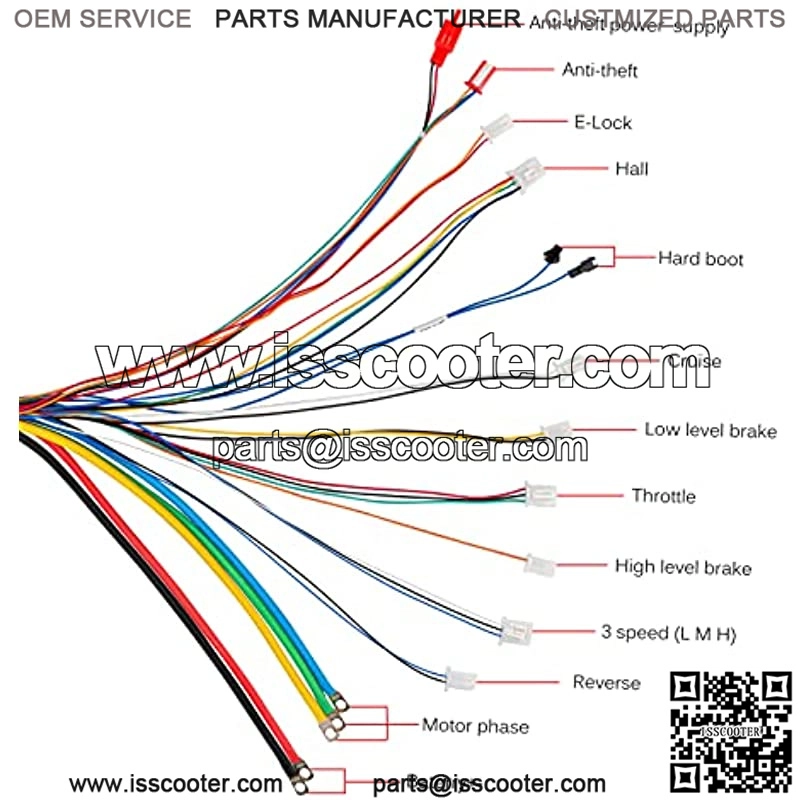 BLDC Controller: Voltage 48-72V, Proctect Vol 42V, Power 3000W, 24 Mosfet, Current 50A, Phase Degree: 120Smart Controller Can Work With Hall Sensor And Without Hall Motor, Brushless Motor Speed Controller, E-Brake, 3-Speed (Low Mid High SpeedReverse Functions, Indicator Light And Power Lock Functions.