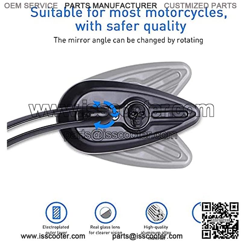 Fashion Design – Unique tear drop and skull charming look with streamline design, it has less wind drag than old-fashioned clumsy round mirror and makes your motorbike more eye-catching