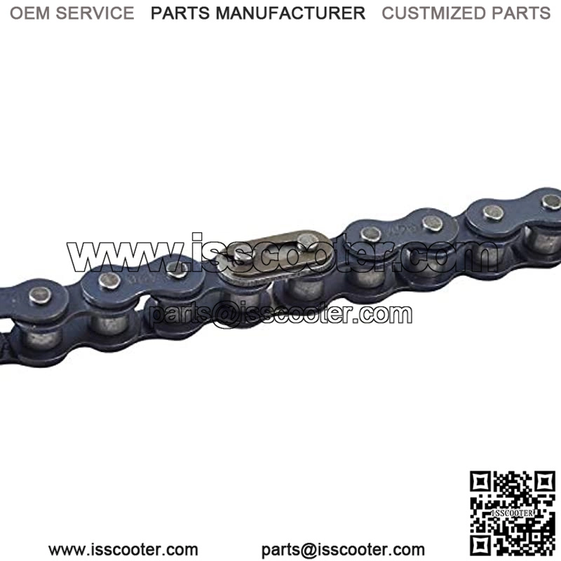 The size 420 chain is widely used on pit bikes, full size gas scooters, motorcycles, ATVs, go-karts, and dirt bikes. This pre-cut example is a perfect replacement item for a broken or missing chain on your Coleman or Massimo mini bike.