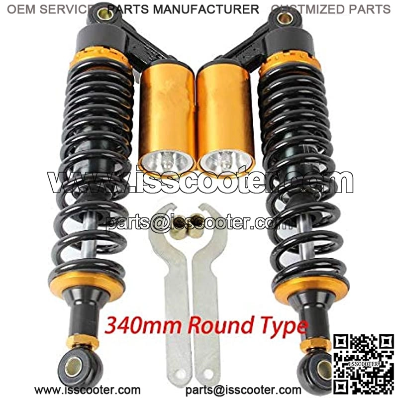 A Pair Adjustable 340mm Motorbike Air Shock Absorbers Universal Fit for Suzuki Yamaha Kawasaki ATV Go Kart Quad Dirt Sport Bikes (BlackGold, 340MM)