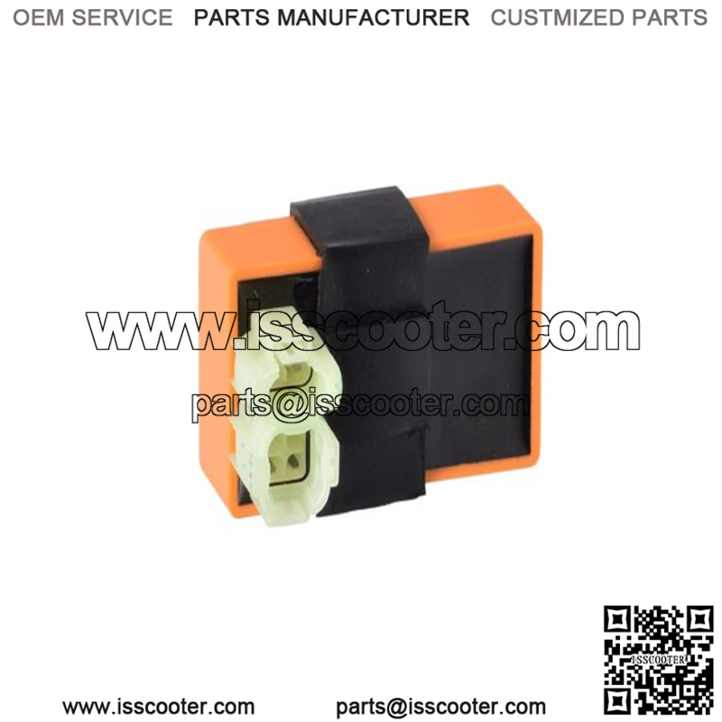Our orange-colored AC High Performance CDI Module (Ignitor) for 50cc, 90cc, 110cc, 125cc, & 150cc gas scooters and ATVs sports a 6-pin (4+2) rounded connector and is one of the most common ignitors found on today’s popular powersports models. This is a “no-rev limit” module that offers a 5 to10% acceleration increase and better top speed.