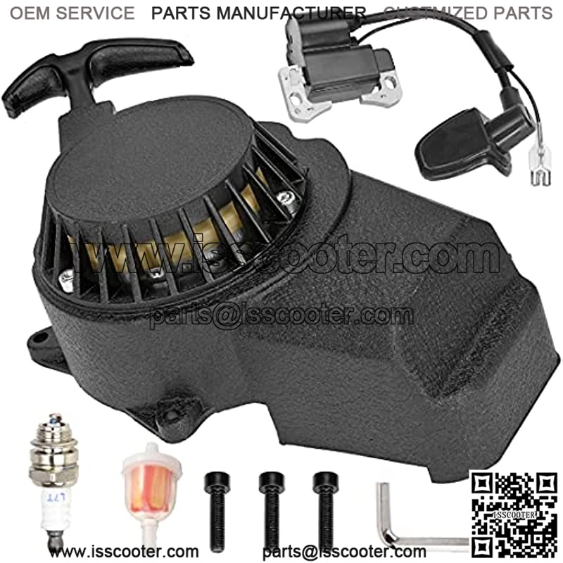 Fitmentfor 2 Stroke Engine 47cc 49cc Chinese ATV Quad 4 Wheeler Go kart Pit Dirt Mini Pocket Chopper Bike Motor Gas ScooterSuch As SSR,YCF,IMR,Atomik,Thumpstar,BSE,Apollo,Kayo,Stomp,Piranha,DHZ,GPX,Pitster Pro,SDG,Braaap,Taotao,Coolster,Roketa,And Many Other Chinese Brands.SpecificationMaterial:Aluminum,Color:Black.SizeMounting Holes: 3,Mounting Hole Distance (Adjacent): 3.15″ (80 mm),Mounting Hole Distance (Across): 4.72″ (120 mm).Package Contents:x Pull Start,3 x Bolt,1 x Spark Plug,1 x wrench,1 x Ignition Coil,1 x Fuel Filter.NotePlease check carefully the item pictures, model and size before purchasing. Or leave us messages for assistance if you are not sure about the fitment.Product Description Alloy Easy Pull Recoil Start Starter Spark Plug Ignition Coil for 2 Stroke Engine 47cc 49cc Coolster Chinese ATV Quad 4 Wheeler Go kart Pit Dirt Mini Pocket Chopper Bike Motor Gas Scooter Black Specification: Product Name:Pull Start Condition: Brand New Color:Black Material: