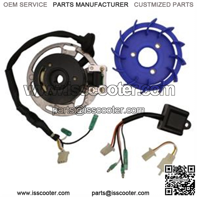 Hoca Alternator Kit for 50cc 2-Stroke Air-Cooled Minarelli Based EnginesCOMPATIBILITY: CPI – Aragon GP 50 2T, Hussar 50 2T >’03, Oliver 50 2T >’03, Popcorn 50 2T >’03Explorer – Cracker 50 2T Diamo – Velocity 50 2TE-ton – Beamer 50 2T, Matrix 50 2TKeeway – F-ACT 50 2T, Matrix 50 2T, Hurricane (Euro) 50 2T, Flash 50 2T, Focus 50 2T, Hacker 50 2T, Goccia 50 2T, Arn 50 2TMalaguti – F12 Phantom R 50 2T >’07 Qlink – Hawk 50 2T, Rave 50 2T, Star 50 2TTNG – LS 50 2T, SS 50 2TUnited Motors – X-Speed 50 2TVento – Triton 50 2T, Zip 50 2THoca Racing Performance Rechargeable Alternator Kit for Yamaha Jog 50cc scooters and 50cc 1E40QMB Minarelli 2-stroke engine based scooters and vehicles. This kit includes a High-Fire Magneto / Stator Super-Coil , Lightened Flywheel, CDI and a Turbo Fan! All together this kit will allow your motor to rev higher and faster!This part fits an engine commonly found on many popular 2-stroke full-size scooters and ATVs from brands such as Yamaha, Malaguti, Ya