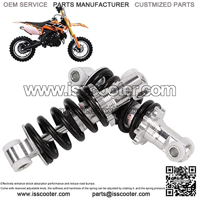 Amplia aplicacin: universal para amortiguadores con una distancia de centro de orificio de 125 mm, adecuado para mini bicicleta de bolsillo con scooter elctrico ATV super minimoto 47cc 49cc.Potente funcin: con alta resistencia y durabilidad, el amortiguador puede mejorar eficazmente el rendimiento de absorcide impactos y reducir los baches de la carretera.Velocidad ajustable de amortiguacin: viene con la perilla ajustable reservada, la suavidad y la dureza del resorte se pueden ajustar girndolo, y la presidel resorte se puede ajustar por smisma.Materiales de alta calidad: el amortiguador esthecho de aleacide aluminio de alta dureza y resorte de acero inoxidable galvanizado, presenta una excelente resistencia a la oxidaciy al desgaste, de larga duracin.Alto rendimiento: la carga mxima del amortiguador de motocicleta de servicio pesado puede ser de 400 libras, con un dise o humanizado, que le brinda mcomodidad.Funcin: 1. Amplia aplicacin: universal para amorti