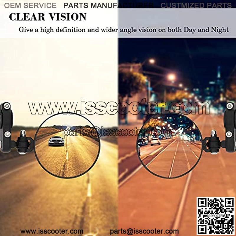 FULLY ADJUSTABLE – Design of Ball-type connection joint and foldable holder, this round style bar end mirror can be 360 degrees rotated and freely adjusted up & down or sideway for the best viewing angle