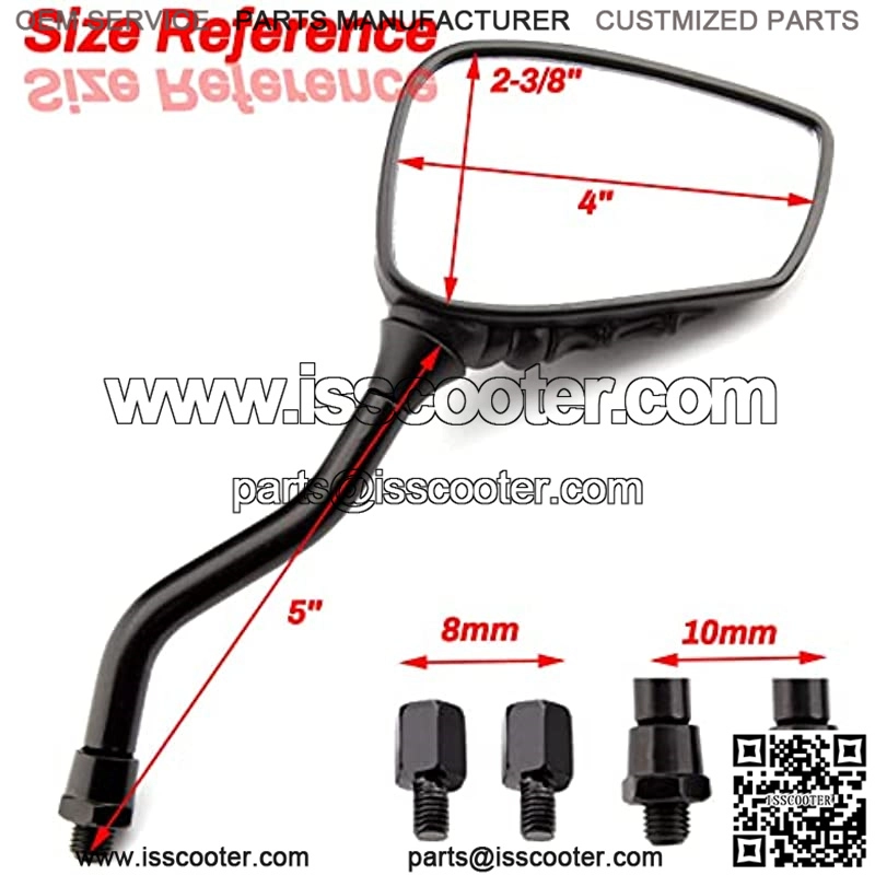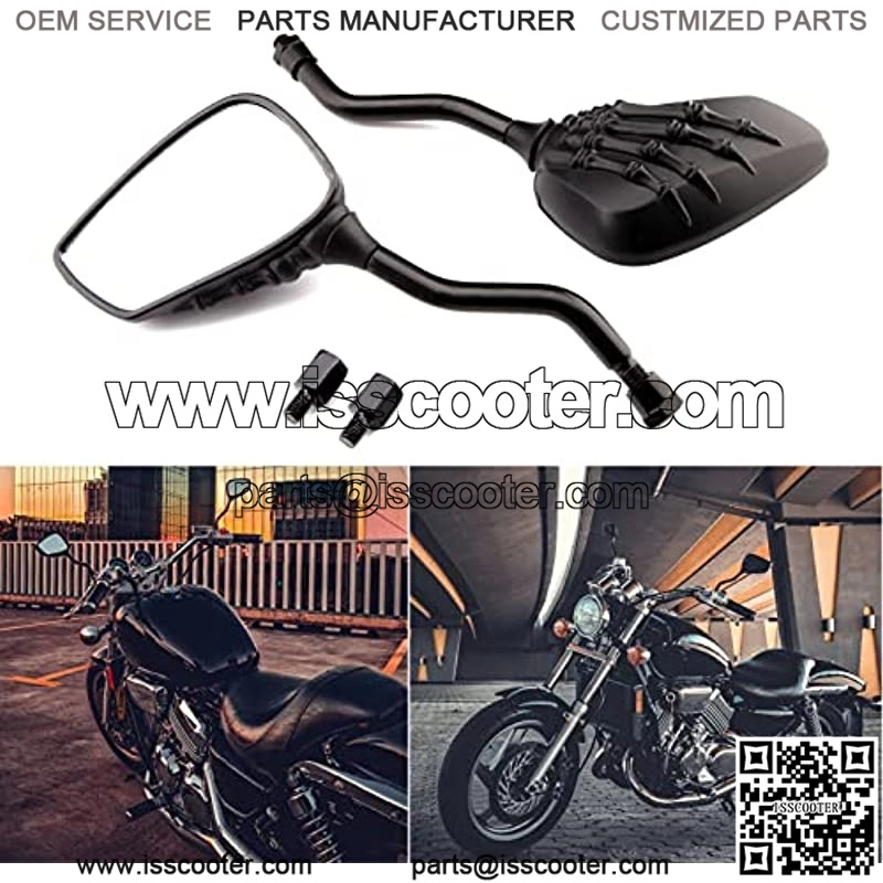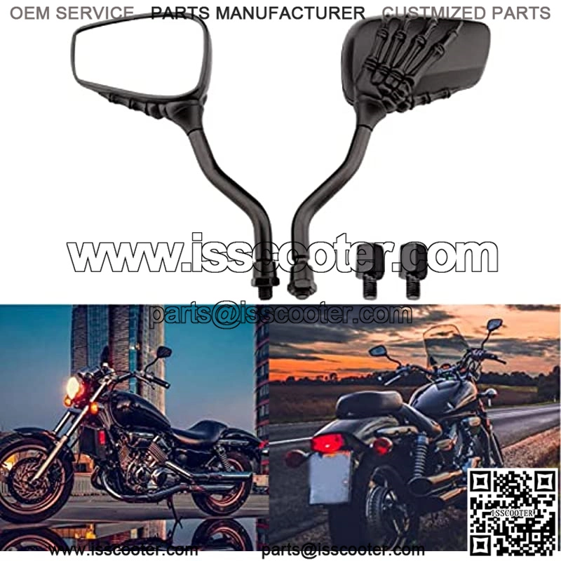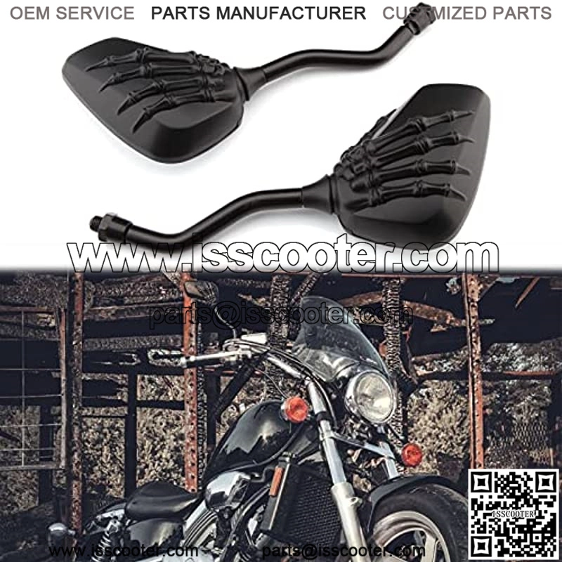 Black 8mm/10mm Motorcycle Skull Skeleton Rearview Side Mirrors For Scooter Chopper Bobber