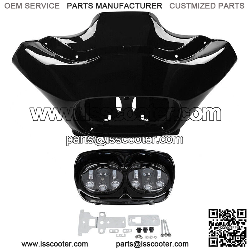 Black Inner Outer Fairing 5.75″ Dual Headlight Fit For Harley Road Glide 98-13 (For: Harley-Davidson)