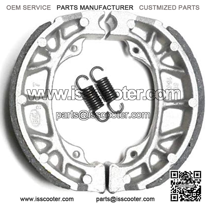 Brake Shoe Pad Set with springs and Coleman Mini Bikes, Jonway, Peace, Tao Tao Scooters. The outside diameter of these brake shoes is 105mm (4-1/8″).