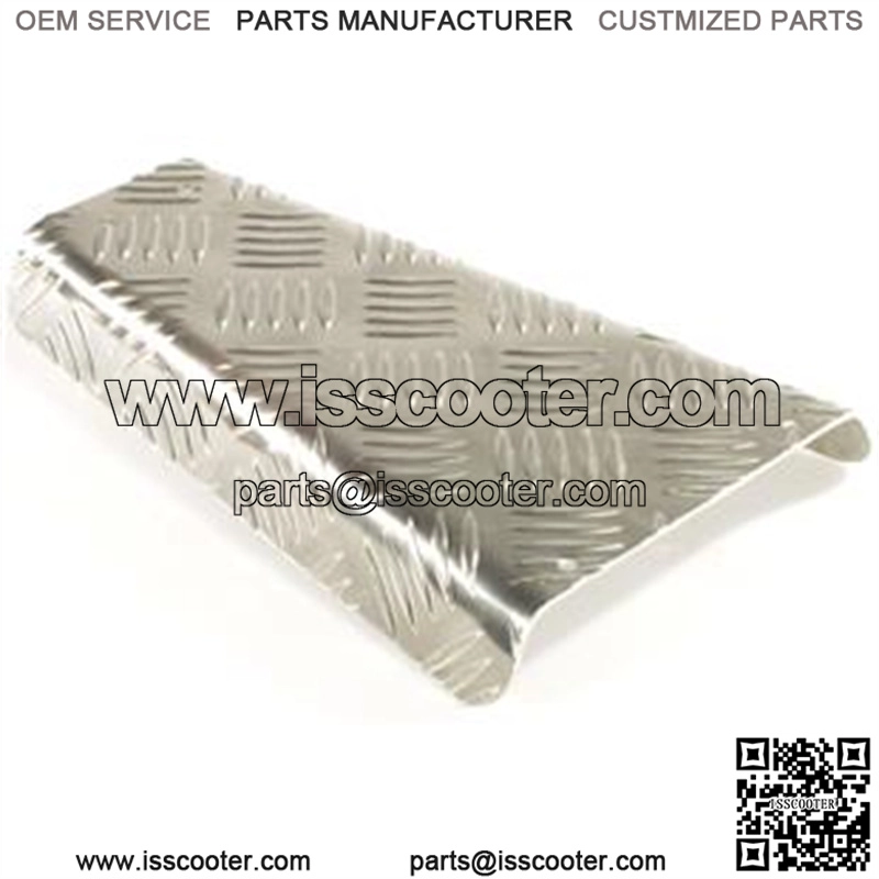 checkered board,aluminiumProduct descriptionRiffled floor boards are the ultimate long runner from the 8T’s and 9T’s. They are pre-formed to fit the frame of your scooter and only require fastening using either screws or rivets. Rusty and otherwise damaged areas of the chassis can also be very effectively covered and hidden from view. The riffled aluminium floorboards are available as a complete 3-piece set. The centrepiece can also be ordered separately. Available in two designs: Diagonally riffled or a propeller design. Each either polished or powder-coated (black or white). All of these floorboard types can be adapted, through gentle persuasion using power-tools and a rubber hammer, to fit most of the earlier Vespa models e.g. VBB,GT,GTR,Sprint,Rally, etc.. -TIP: Visually especially effective in combination with a chromed side-stand, cylinder cowling, flywheel and selector box covers. community user ‘simon m’ (about PART No. 50200000): ??Fits my scooter perfectly, high quality