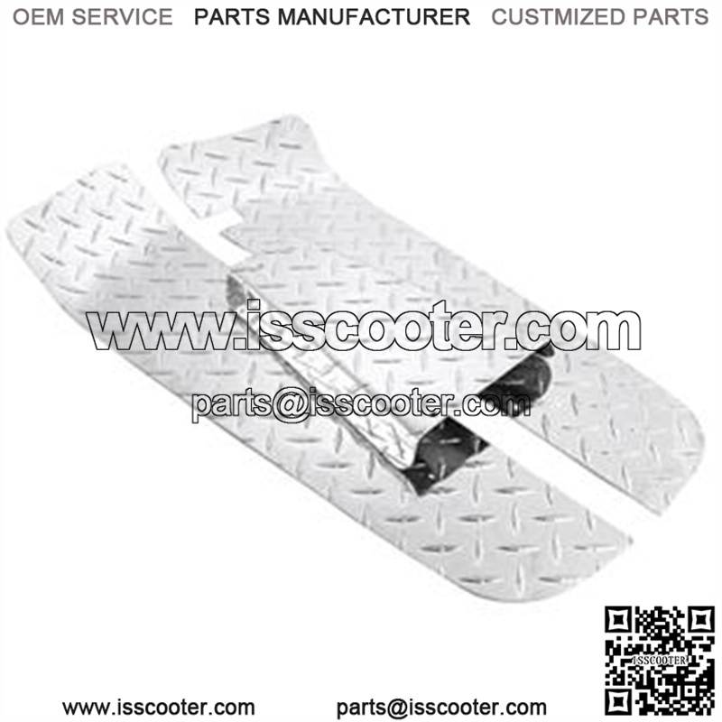 aluminiumsurface: Diamond3-partsProduct descriptionRiffled floor boards are the ultimate long runner from the 8T’s and 9T’s. They are pre-formed to fit the frame of your scooter and only require fastening using either screws or rivets. Rusty and otherwise damaged areas of the chassis can also be very effectively covered and hidden from view. The riffled aluminium floorboards are available as a complete 3-piece set. The centrepiece can also be ordered separately. Available in two designs: Diagonally riffled or a propeller design. Each either polished or powder-coated (black or white). All of these floorboard types can be adapted, through gentle persuasion using power-tools and a rubber hammer, to fit most of the earlier Vespa models e.g. VBB,GT,GTR,Sprint,Rally, etc.. -TIP: Visually especially effective in combination with a chromed side-stand, cylinder cowling, flywheel and selector box covers. community user ‘simon m’ (about PART No. 50200000): ??Fits my scooter perfectly, high