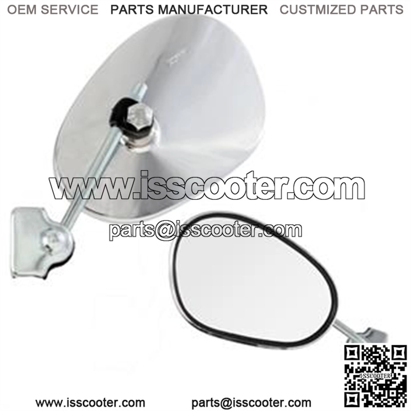 kidney shape 140×95 mmchromestem length 100mmlargeProduct descriptionIf you drive on the right hand road side (America, Canada, Germany, Austria, France, Italy, etc.) the mirror has to be on the left side, then you should order an ??L?? mirror. In a country with left hand traffic (England, Ireland, Australia, etc.) then you??ll need an ??R?? mirror. ??L?? means left hand ??R?? means right hand ??L+R?? means both left and right hand.Good to know: Mirror legislation Older vehicles that do not possess an EU registration, require a minimum reflection area of 60cm2 (just over 9in.2) on each of their mirrors. An European approval emblem is not absolutely necessary. Current scooter models are all registred according to EU legislation. The mirrors that are attached to them must have EU approval markings. Mirrors that have less than a 60cm2 reflection area or no EU approval markings are not meant for (leagal) road use.The minimum number of mirrors required depends on the first day of registration before