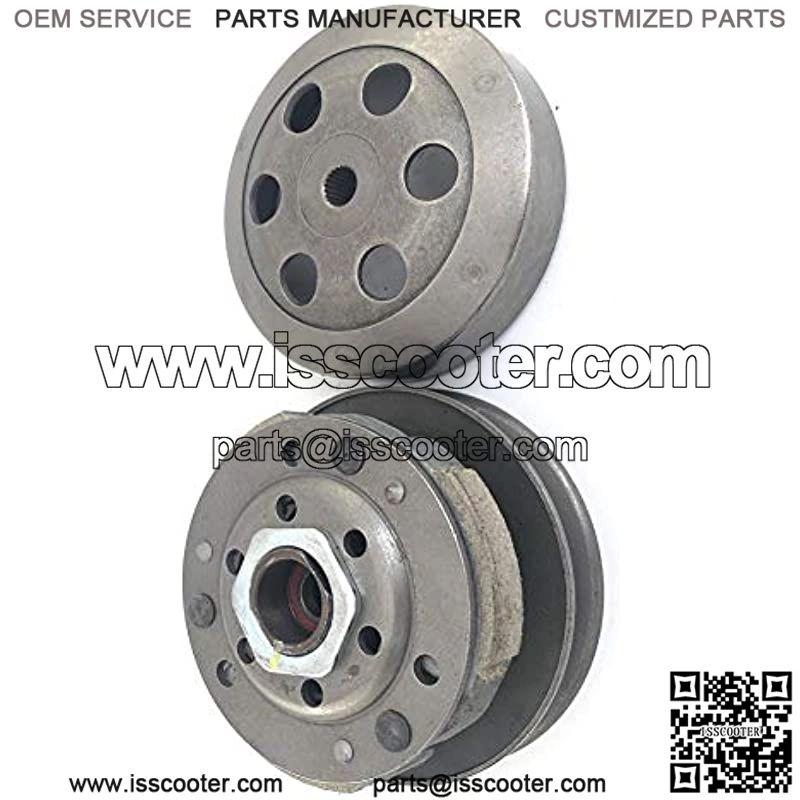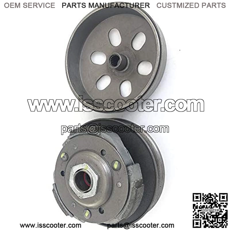 Fits GY6 125cc&150cc 4 Stroke Engine 19 Splines Inside The Clutch Drum/Bell OD of Drum: 136mmID of Drum: 125mm ID of spline area: 14.4mmPulley Diameter: 140mm New High Quality Aftermarket Replacement Clutch Assembly