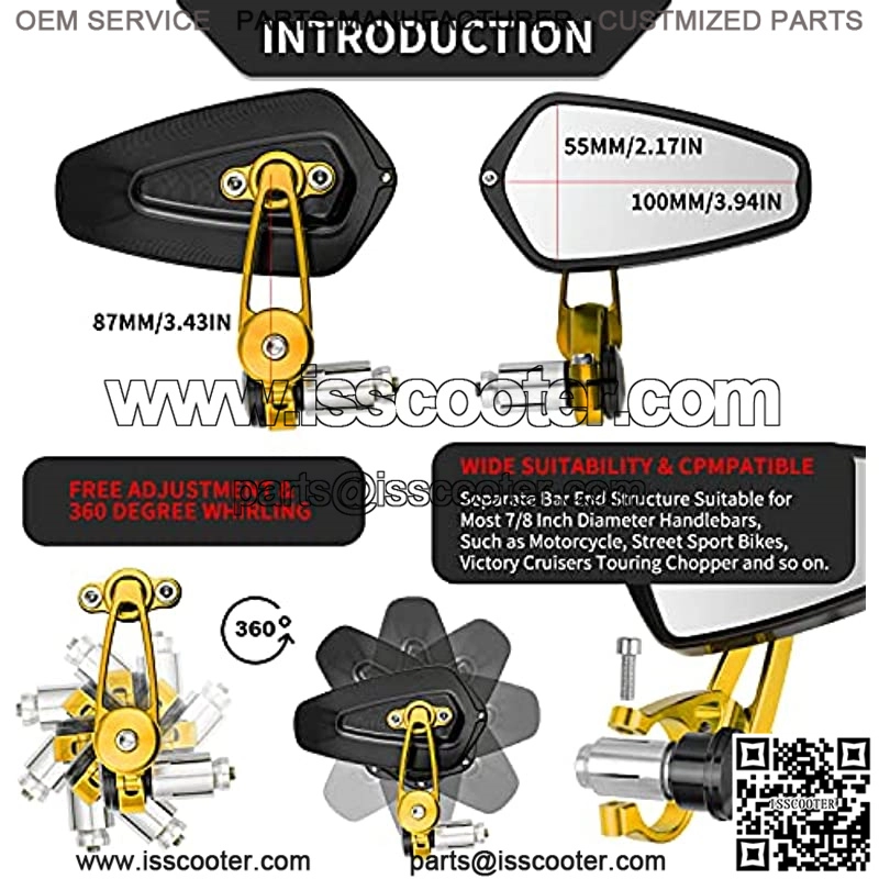 CNC Aluminum Alloy Motorcycle Mirrors, bar end mirrors for motorcycles Side Folding 22MM 25MM 7/8″ Handlebar Mirror Universal Rear View For M8/M6 Standard Street Bike minimoto Scooter (Gold)