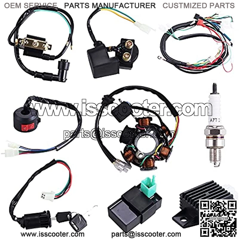 Complete Electrics Stator Coil CDI Quad Wiring Harness Solenoid Relay Spark Plug for 4 Wheelers Stroke ATV 50cc 70cc 90cc 110cc 125cc Pit Quad Dirt Buggy Bike Go Kart Parts by AUTOMOTIVE
