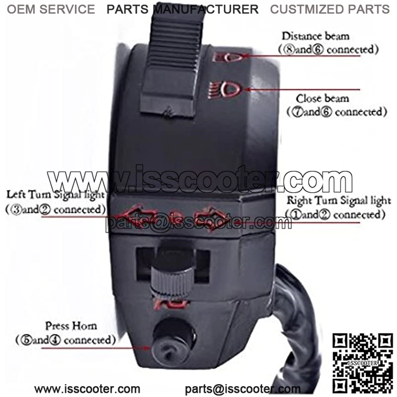 Compact size, All-in-1 design switch control. Built in turn signal switch, horns switch and hi/lo beam switch.