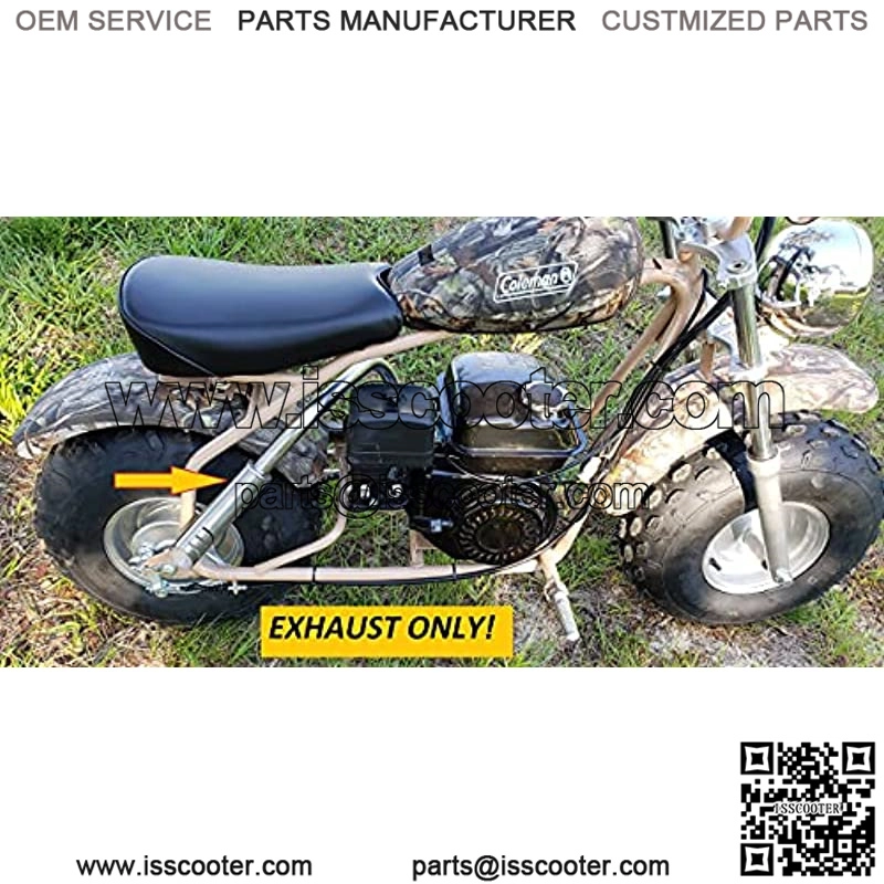 This is custom made Exhaust Header, Coleman Powersports CT200U-EX Camo 196cc/6.5HP Gas Powered Trail Bike Scooter.
