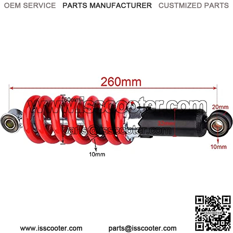 Impact grade 400lb, 260mm or 10.2 “eye to eye, inner diameter 10mm, suitable for 50cc-150cc off-road vehicle, pit car, ATV, go kart and motorcycle.