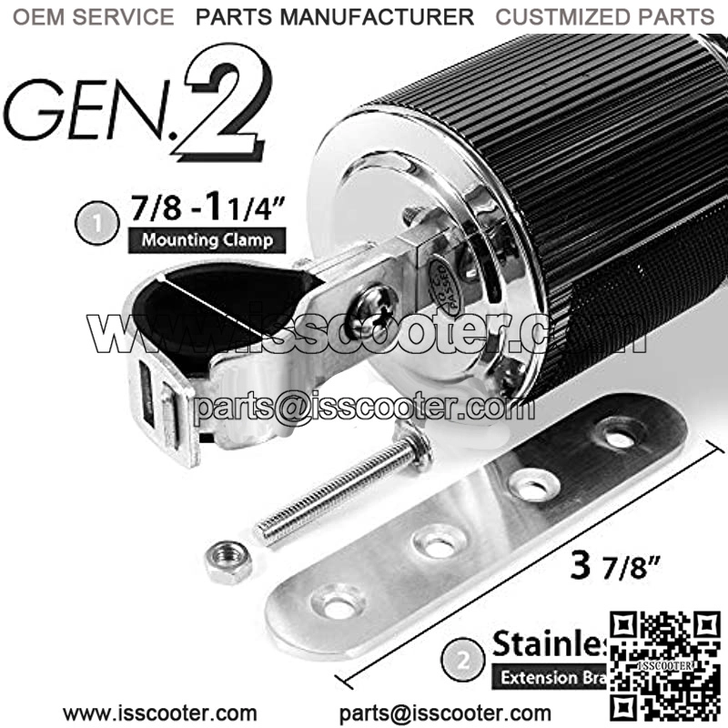 [Gen.2 Updates:] New Mounting Clamp Supports 7/8to 1 1/4Handlebar. Included Set of 2 Optional Stainless Steel Extension Mounting Bracket for More Custom Installation. More Powerful Speaker Core.
