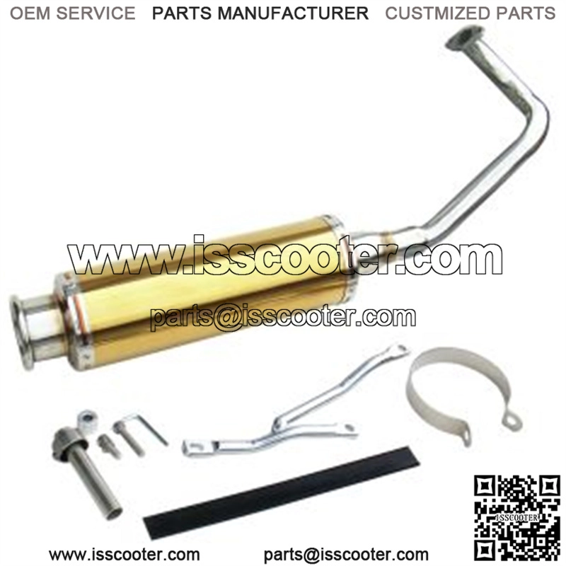 Beautiful gold toned stainless steel muffler Pipes and hardware included Save money with Monster Scooter Parts If you want to save some money, we have this high end stainless steel exhaust pipe for 50cc, 125cc, and 150cc GY6 engines from NCY will have your scooter looking like a work of art We offer this magnificent exhaust pipe in a great-looking gold-toned finish that will look good on any scooterDescription If you want to save some money, we have this high end stainless steel exhaust pipe for 50cc, 125cc, and 150cc GY6 engines from NCY will have your scooter looking like a work of art. We offer this magnificent exhaust pipe in a great-looking gold-toned finish that will look good on any scooter. We ended up with too many of these in our already stuffed and bulging warehouse, so let our overabundance of scooter parts work in your favor.Let Monster Scooter Parts be your source for NCY scooter parts and accessories. WARNING California Residents: Proposition 65 Warnin