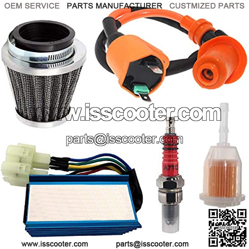 High Performance Racing Ignition Coil Fit most models of Chinese Scooters, ATVs, Go-Karts Mopeds with GY6 50cc, 125cc, and 150cc 139QMB, 152QMI and 157QMJ based engines.Fits all Chinese brands, such as TaoTao, Buyang, Roketa, Coolsport, NST, BMX, Kazuma, Sunl, AIM-EX, Baja, Pantera, Kymco, Jonway, Jmstar, Tank, Peace, Dongfang, Kazuma, JCL, BMS,Carroll Stream Eagle etc and various unlisted makes/models.CDI is ac fired cdi, 6 pinRacing Ignition coil surface finish: plastic;Color: Orange;Overall length:19″, comes triple electrode head Spark plug.Match original equipment exactly for a perfect fit, easy to install.Package including: 1 cdi 1 ignition coil 1 spark plug 1 Air Filter 1 Inline Fuel Filters.High Performance Ignition coil kit compatibility High Performance Ignition coil kit compatibilityHigh performance racing ignition coil Fit of Chinese Scooters ATV Go-Karts Mopeds with GY6 50cc/125cc/150cc &139QMB/152QMI / 157QMJ engines.CDI is Ac fired cdi, 6 pin fit of gy6 / moped/ racing /s