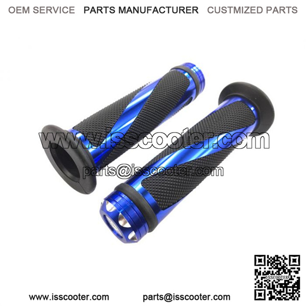 MYK Universal billet aluminum grip set (7/8 handlebar) Blue – Left and Right Grip Set, Universal Fit (No bar end) – Non Slip Design – Material: Durable PVC, Gel Rubber & Billet Aluminum – Overall Length: 5 3/8″ (137mm) – Left Side (Bar) Hole Diameter: 7/8″ (22mm) – Right Side (Throttle) Hole Diameter: 1″ (25mm) Fitment: Universal for most motorcycles and scooters with a 7/8″ left grip and 1″ right grip.